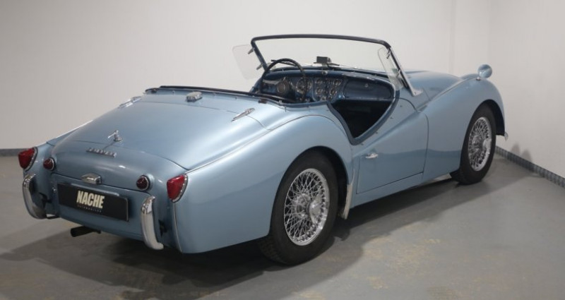 cout carte grise (en sarthe) : 294,76€ nache automobiles vous propose cette belle triumph tr3 a de 1960. voiture toujours suivie et entretenue régulièrement dans des garages spécialisés. nous disposons de tout l’historique complet depuis 1986. cette voiture fut restaurée en intégralité entre 1985 et 1990. de nombreux frais ont de nouveaux été engagés entre 2004 et 2007 (moquette neuve, amortisseurs neufs, jantes neuves, réfection boite de vitesse, remplacement coussinets de bielle + de nombreux autres frais mécaniques) en 2009, remplacement de l’échappement à 26.824 miles en 2010 remplacement de la capote et peinture complète du véhicule à 28.857 miles en 2011 remplacement de l’embrayage à 30.224 miles de très nombreuses factures d’entretien courant (vidange) viennent compléter l’historique complet en notre possession. véhicule visible dans nos locaux sur rendez-vous uniquement. la carte grise n’est pas incluse dans le prix affiché. des frais administratifs pour un montant de 500€ ttc en sus sont à prévoir. reprises et financement (de 12 à 72 mois) possible - véhicule garanti légalement 12 mois. possibilité de souscrire une garantie commerciale de 6, 12 ou 24 mois. garantie valable dans le réseau de la marque ou dans un garage indépendant partout en europe. prendre rdv